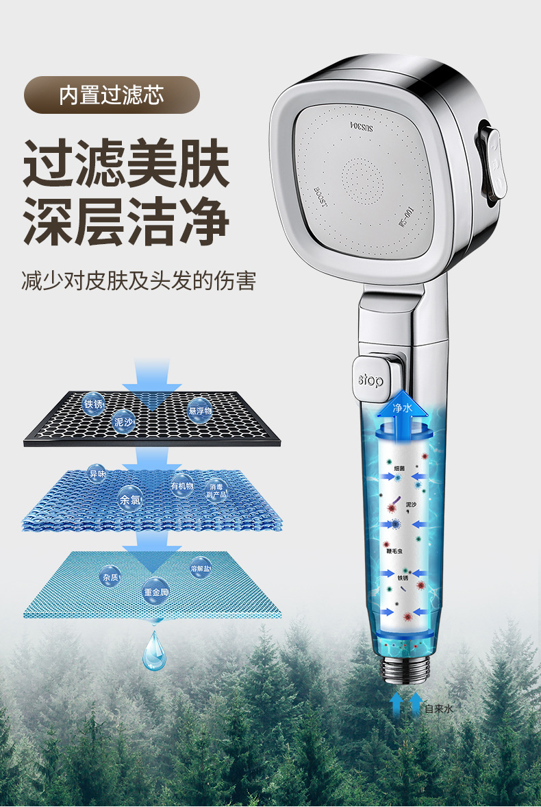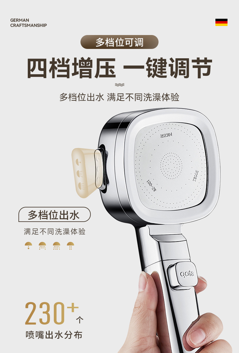 New Powerful Turbo Shower Head Ultra-strong Pressure Shower Faucet One-click Water Stop Shower Spray